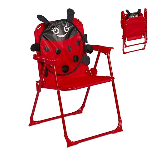 Relaxdays Chaise Pliante pour Votre Enfant, Coccinelle, H x L x P : 51,5 x 36 x 37,5 cm, pour l'extérieur, Multicolore