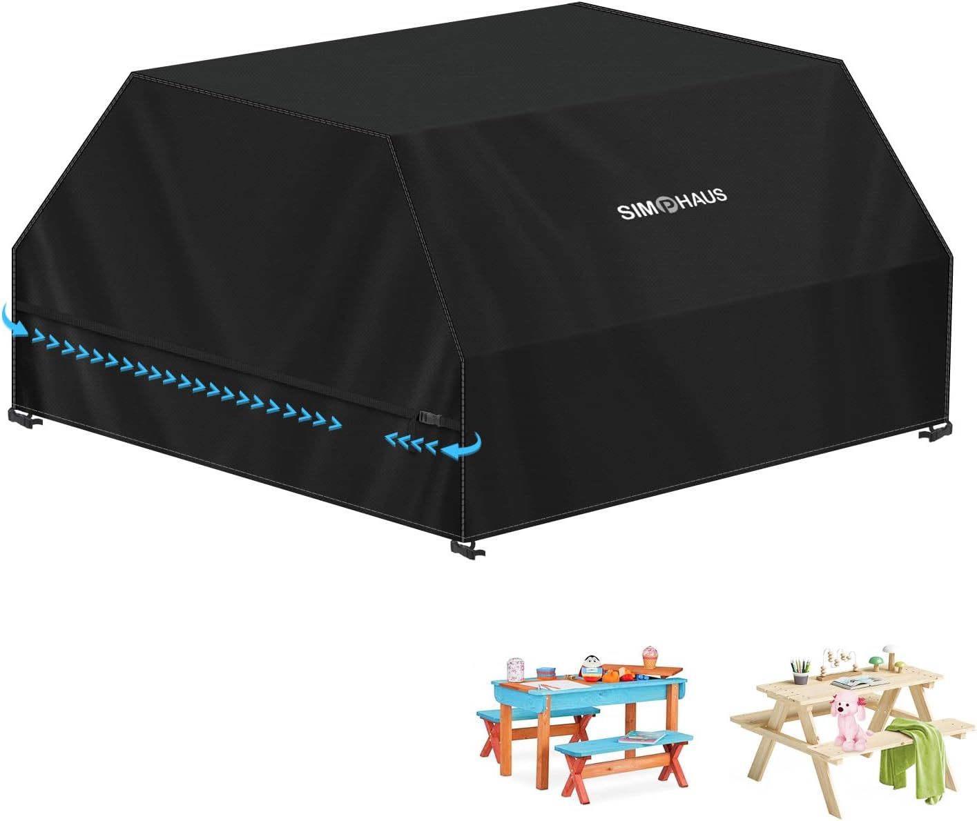 Schleuder Housse de Table Picnic Enfant Imperméable, Housse pour Salon de Jardin Enfant Exterieur, Bâche Table et Chaise Enfant Bois, Robuste Tissu Oxford 420D Coupe-Vent Anti-UV 100W x 90D X 60Hcm