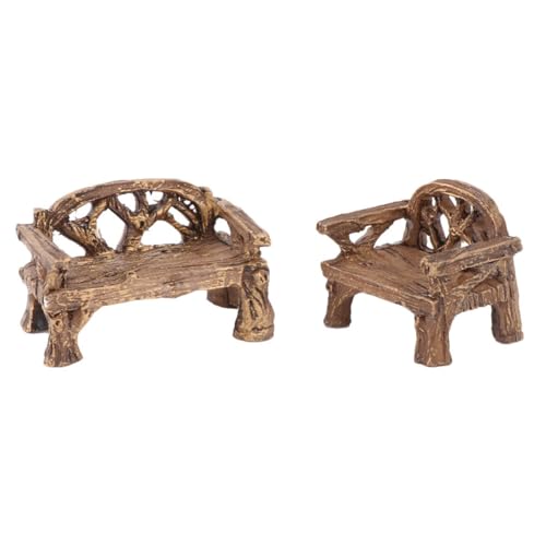 DECOMELODY Lot de 2 Ornements Miniatures pour Bonsaï en Résine Décor Rustique Mini Chaise Longue et Fauteuil Individuel Accessoires Décoratifs pour Micro-Jardin D’Intérieur et Extérieur