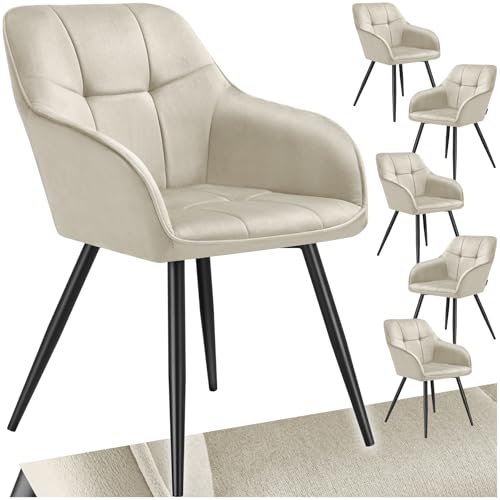 TecTake® Lot de 6 Chaises de Salle à Manger rembourrées Modernes Chaise Velours satiné Fauteuil Salon Design Scandinave Pieds en Acier Chaise pour Coiffeuse, Chambre, Coiffeuse, Salon, Dressing