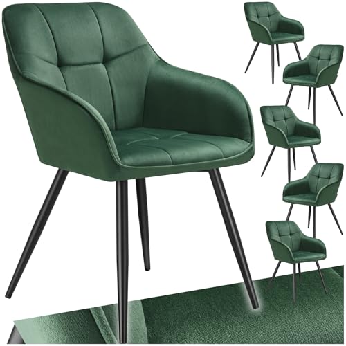 TecTake® Lot de 6 Chaises de Salle à Manger Chaises Rembourrées Chaise Ergonomique Velours Fauteuil Salon chaises Scandinave Pieds en Metal Noir Chaises Coiffeuse, Chambre, Salon, Bureau, Cabinet