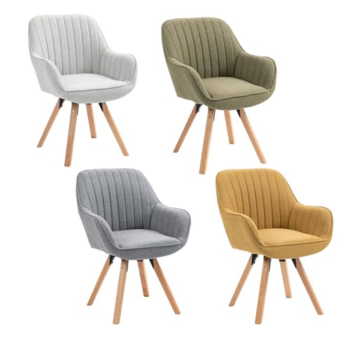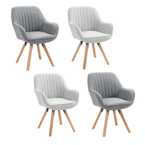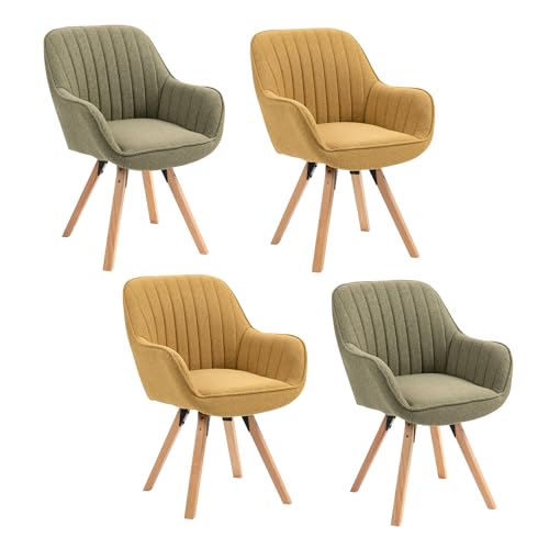 MEUBLE COSY Lot de 4 Chaise Salle à Manger Scandinave Fauteuil Coiffeuse Siège Pivotant avec Accoudoirs pour Chambre Salon Cuisine Bureau, Rembourré en Tissu Pieds en Bois Massif, Multicolore