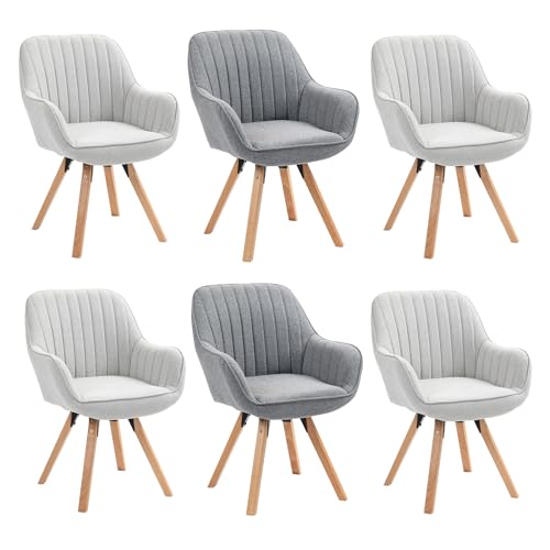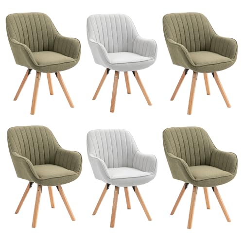 MEUBLE COSY Lot de 6 Chaise Salle à Manger Scandinave Fauteuil Coiffeuse Siège Pivotant avec Accoudoirs pour Chambre Salon Cuisine Bureau, Rembourré en Tissu Pieds en Bois Massif, Multicolore