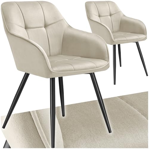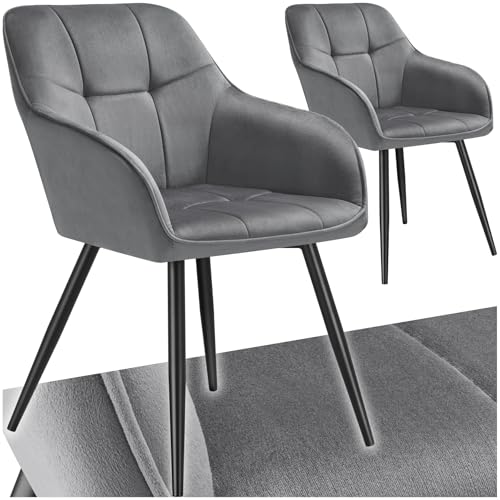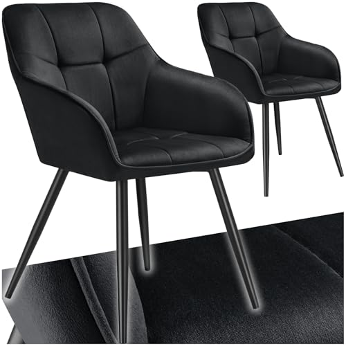 TecTake® Lot de 2 Chaises de Salle à Manger Chaises Rembourrées Fauteuil Salon Design Scandinave Pieds en Acier Noir Élégant avec Accoudoirs Chaise Coiffeuse, Chambre, Salon, Bureau, Cabinet