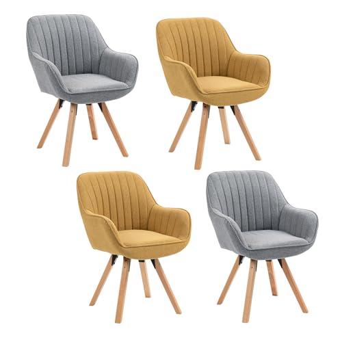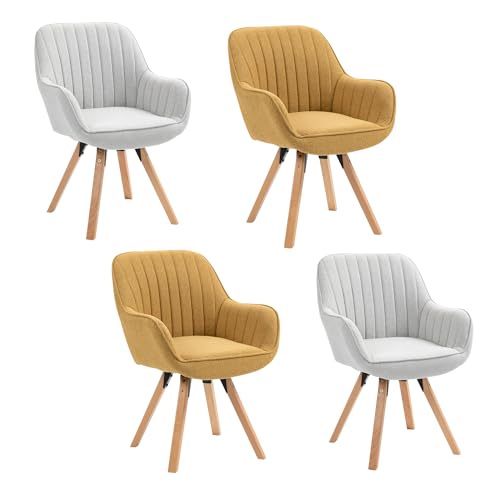 MEUBLE COSY Lot de 4 Chaise Salle à Manger Scandinave Fauteuil Coiffeuse Siège Pivotant avec Accoudoirs pour Chambre Salon Cuisine Bureau, Rembourré en Tissu Pieds en Bois Massif, Jaune, 60x58x83cm