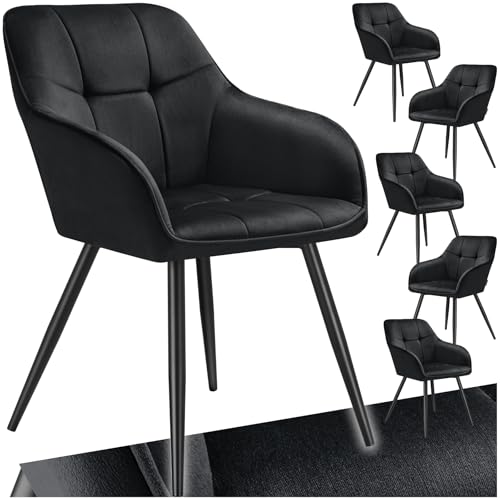 TecTake® Lot de 6 Chaises de Salle à Manger Chaises Rembourrées Fauteuil Salon Design Scandinave Pieds en Acier Noir Élégant avec Accoudoirs Chaise Coiffeuse, Chambre, Salon, Bureau, Cabinet