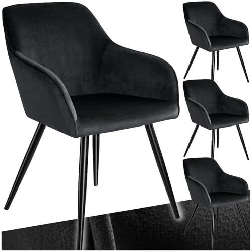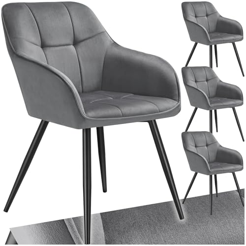 TecTake® Lot de 4 Chaises de Salle à Manger Chaises Rembourrées Fauteuil Salon Design Scandinave Pieds en Acier Noir Élégant avec Accoudoirs Chaise Coiffeuse, Chambre, Salon, Bureau, Cabinet