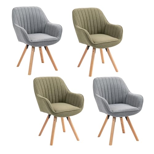 MEUBLE COSY Lot de 4 Chaise Salle à Manger Scandinave Fauteuil Coiffeuse Siège Pivotant avec Accoudoirs pour Chambre Salon Cuisine Bureau, Rembourré en Tissu Pieds en Bois Massif, Vert, 60x58x83cm