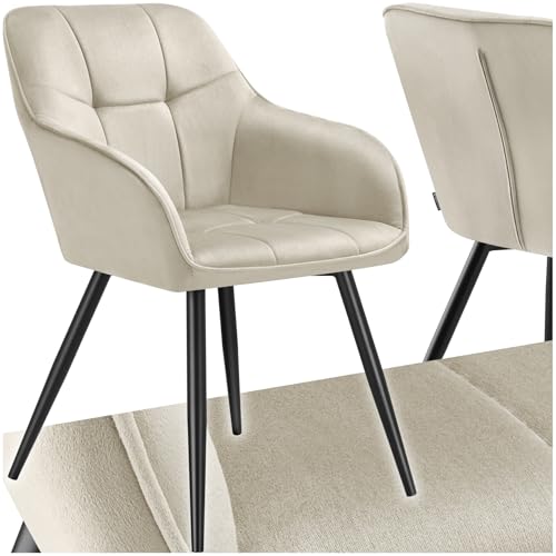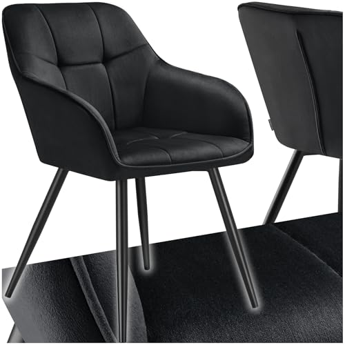 TecTake® Chaise de Salle à Manger rembourrée Moderne Fauteuil Salon Chaise Velours Design Scandinave Pieds en Acier Noir Élégant avec Accoudoirs pour Coiffeuse, Chambre, Salon, Bureau, Cabinet