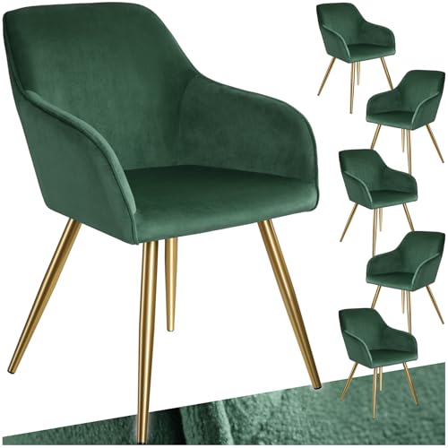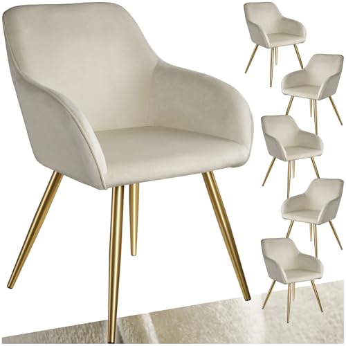 TecTake® Lot de 6 Chaises de Salle à Manger rembourrées Modernes Fauteuil Salon Chaise Velours Design Scandinave Pieds en Acier Doré Élégant avec Accoudoirs pour Coiffeuse, Chambre, Salon