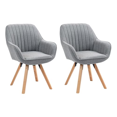 Meuble Cosy Lot de 2 Chaise Salle à Manger Scandinave Fauteuil Coiffeuse Siège Pivotant avec Accoudoirs pour Chambre Salon Cuisine Bureau, Rembourré en Tissu Pieds en Bois Massif, Gris, 60x58x83cm