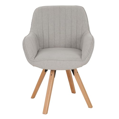 Meuble Cosy Chaise Salle à Manger Scandinave Fauteuil Coiffeuse Siège Pivotant avec Accoudoirs pour Chambre Salon Cuisine Bureau, Rembourré en Tissu Pieds en Bois Massif, Gris, 60x58x83cm
