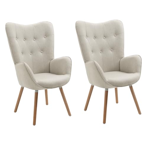 Meuble Cosy Lot de 2 Fauteuil Salon Scandinave Confortable Chaise de Coiffeuse Canapé Allaitement avec Assise Épais Accoudoirs Rembourés en Tissu Pieds Bois Massif, Beige