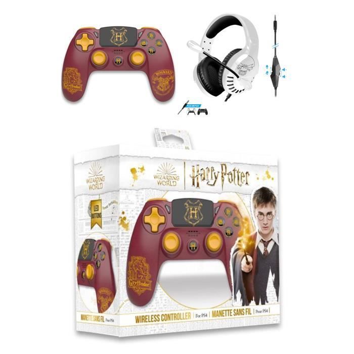 Manette PS4 Bluetooth Harry Potter Gryffondor Rouge lumineuse 3.5 JACK + Casque Spirit of Gamer PRO-H3 PS4-PS5 PLAYSTATION