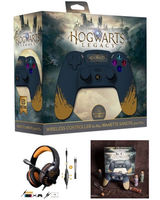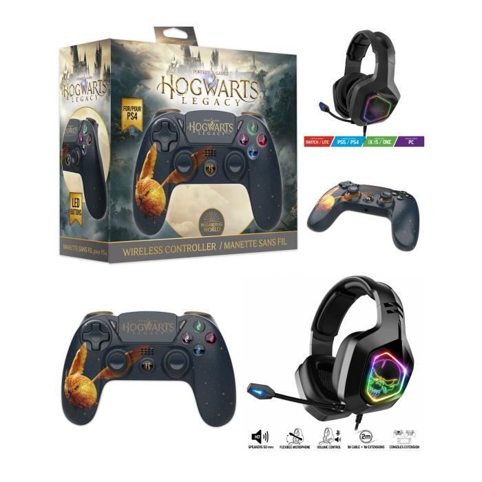 Manette PS4 Bluetooth Harry Potter Hogwarts Legacy Vivet Doré Lumineuse 3.5 JACK + Casque Gamer PRO-EH50 Multiplateforme