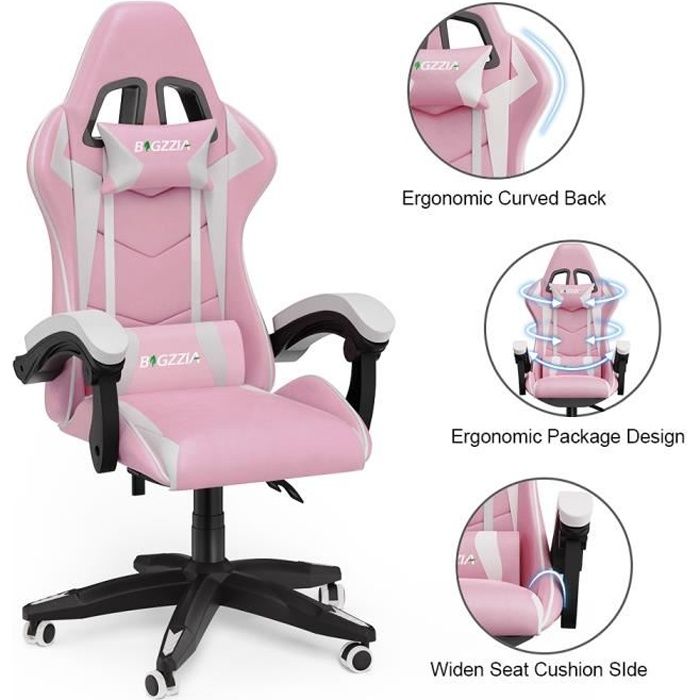 vidaXL Gamingstol med massage vit och rosa konstläder 345454