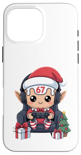 Chaise de Gamer Elfe de Noël, Casque d'écoute, Jeu de Coque pour iPhone 16 Pro