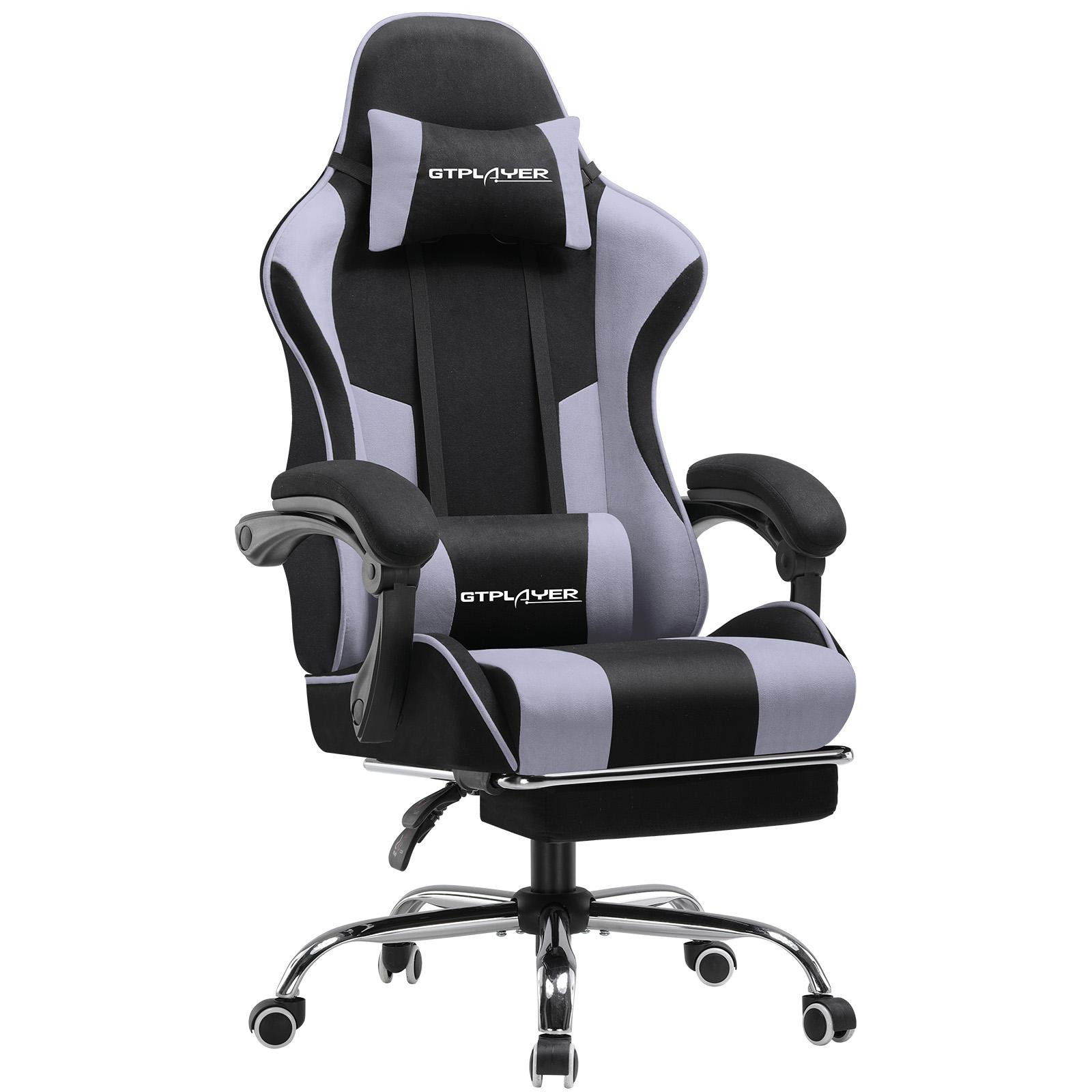 GTPLAYER Chaise de bureau Gaming Tissu Fauteuil ergonomique Gaming Chaise avec repose-pieds, appui-tête Coussin lombaire, rembourré Gaming Chair, violet