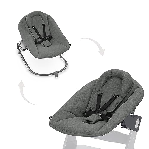 hauck Transat Bebe 3 en 1 Highchair Bouncer pour Chaise Haute Bébé Alpha+, Beta+ et Arketa, Balancelle Ergonomique dès Naissance jusqu'à 15 kg, Harnais 5 Points, Réducteur, Housse Coton, Gris Chiné