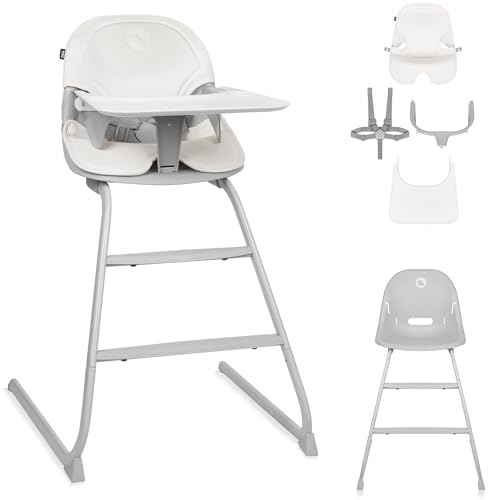 Kinderkraft BINCI chaise haute, légère et pliable, 5 kg, avec plateau, repose-pieds et harnais 5 points, idéale pour petits espaces et voyages, Gris Clair