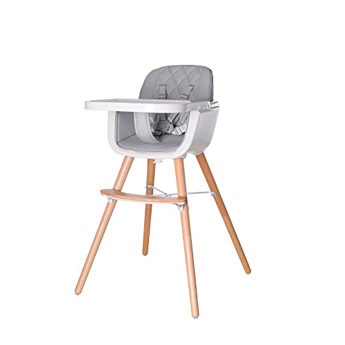 CHILDHOME, Chaise Haute Bebe Evolutive : De 0 mois à 85KG, Tablette Incluse, Bois de Hêtre, Arceau, Sécuritaire Harnais 5 points, Vis Invisibles, Evosit, Stone Grey