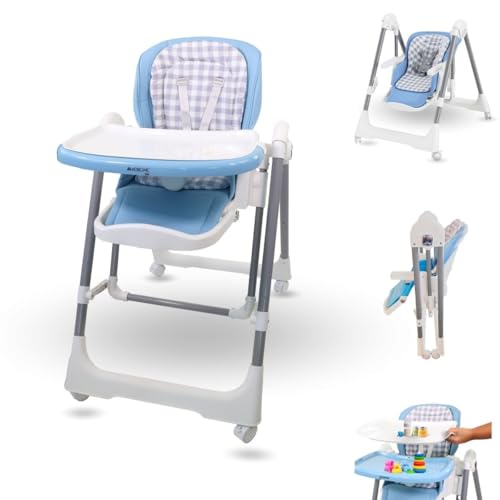 Babylo Hi Lo Chaise haute et chaise junior, 6 hauteurs, 3 positions d'inclinaison, plateau amovible à 2 couches et harnais de sécurité à 5 points de 6 mois à 15 kg