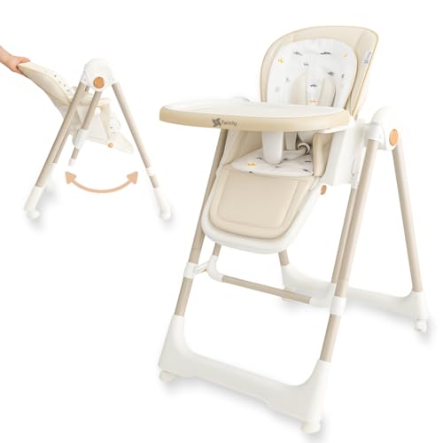 Kinderkraft BINCI chaise haute, légère et pliable, 5 kg, avec plateau, repose-pieds et harnais 5 points, idéale pour petits espaces et voyages, Beige