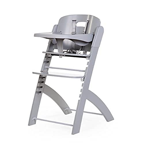LIONELO Chaise Haute en Bois Celia, Évolutive, dès 6 mois jusqu'à 90 kg, Repose-pieds Réglable, Harnais 5 Points, Coussin de Siège, Nettoyage Facile (Grey)