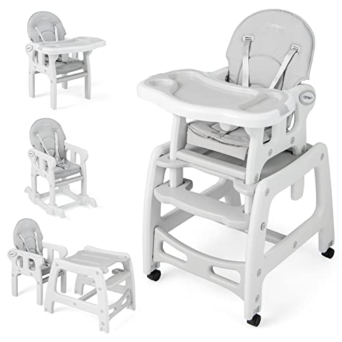 COSTWAY 3 en 1 Chaise Haute Bébé Convertible avec Plateau Réglable, Chaise d'Alimentation Bébé avec Dossier à 3 Niveaux, Coussin de Siège, Harnais 5 Points, Charge 20KG, 6-36 Mois (Gris)