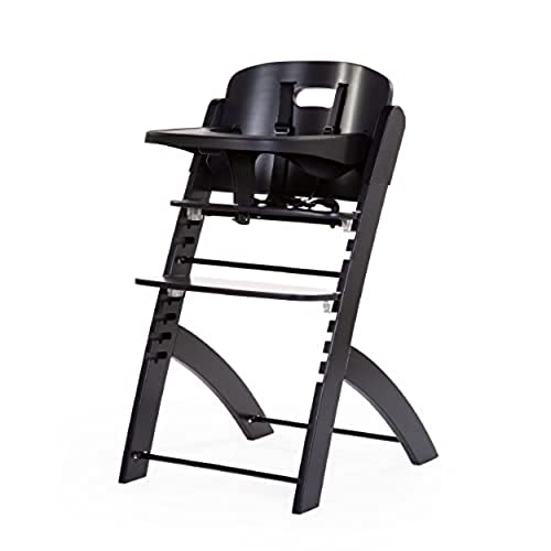 CHILDHOME, Chaise Haute Bebe Evolutive : De 0 mois à 85KG, Tablette Incluse, Bois de Hêtre, Arceau, Sécuritaire Harnais 5 points, Vis Invisibles, Evosit, Noir