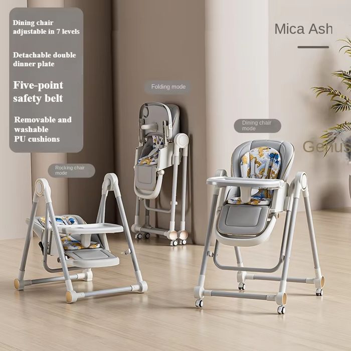 Chaise haute et balancelle bébé enfant 2 en 1 roue à Cardan lisse pliable inclinable chaise haute bébé 6 mois à 3 ans-gris