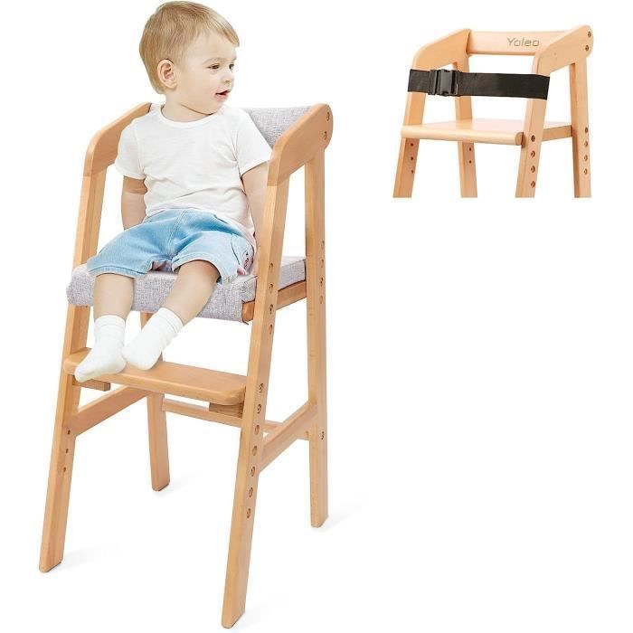 Chaise Haute Evolutive pour bébé Tabouret Enfant Réglable Fabriqué en bois de hêtre de haute qualité avec ceintures de sécurité