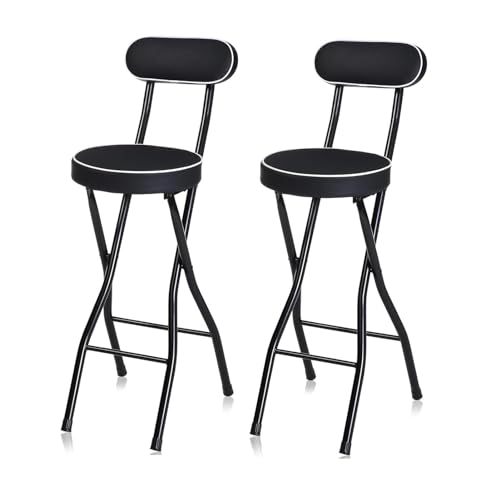 2pcs Tabourets de Bar Pliables pour Adultes, Tabourets Ronds Pliables avec Dossier, Chaise Haute pour Camping/Bureau/Salon/Salle de Bain/Jardin (Color : Black, Size : Seat Height 75cm (29.5inch))