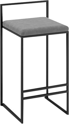 Tabouret barreaux, chaises Bar Velours avec Dos en métal Repose-Pied, Chaise Haute comptoir l'îlot de Cuisine, Livres (gris-1ps, 65 cm)
