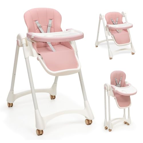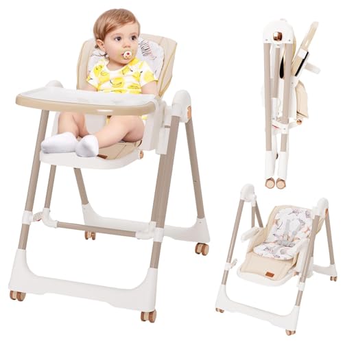 5 en 1 chaise haute bébé evolutive, pliable chaises hautes enfant,transat haut inclinable bébé confort,chaise reglable hauteur avec table et roulettes