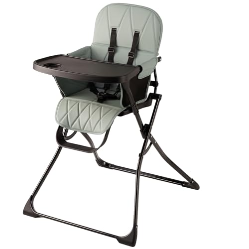 Bambisol - Chaise Haute Bébé Pliable - Ultra Compacte et Légère (4,7kg) - Tablette Amovible Réglable - Pliable Facile - Nettoyage Facile - Sécuritaire - Bébé jusqu'à 3 ans et/ou 15 kg - Grise