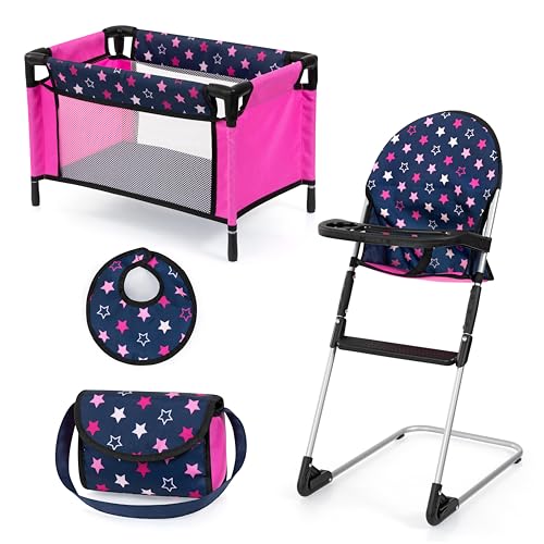 Bayer Design 63216AB Chaise Haute pour poupée, lit Poupon, Sac à bandoulière, Bavoir, Accessoires de poupées pour Jeux de rôle des Enfants - à partir de 3 Ans