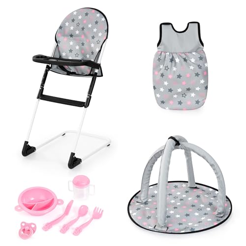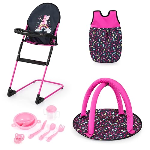 Bayer Design 63207AC Chaise Haute pour poupée, Arche d'éveil, Sac de Couchage pour Poupon et Accessoires, Set de Jeu à partir de 3 Ans