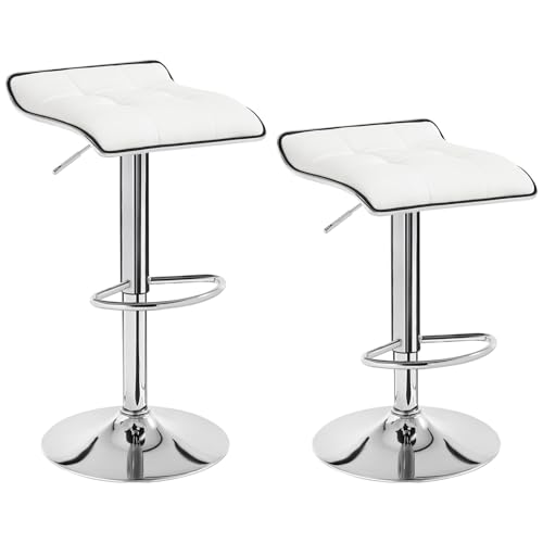 WOLTU Tabouret Bar Lot de 2, Chaise Haute Cuisine, Pivotant à 360°, Hauteur Réglable, pour Bar, Cuisine, Comptoir, Café, PVC+Métal, avec Repose-Pieds, Blanc+argenté