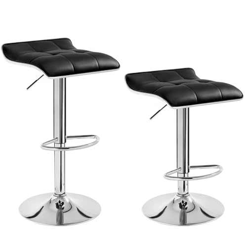 WOLTU Tabouret Bar Lot de 2, Chaise Haute Cuisine, Pivotant à 360°, Hauteur Réglable, pour Bar, Cuisine, Comptoir, Café, PVC+Métal, avec Repose-Pieds, Noir + Argenté
