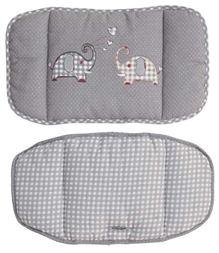 roba Coussin de Chaise Haute Jumbotwins en 2 Pièces - Facile à Nettoyer et Lavable - Réducteur de Siège Confortable - dès 6 Mois - Éléphant Brodé - Carreaux Gris