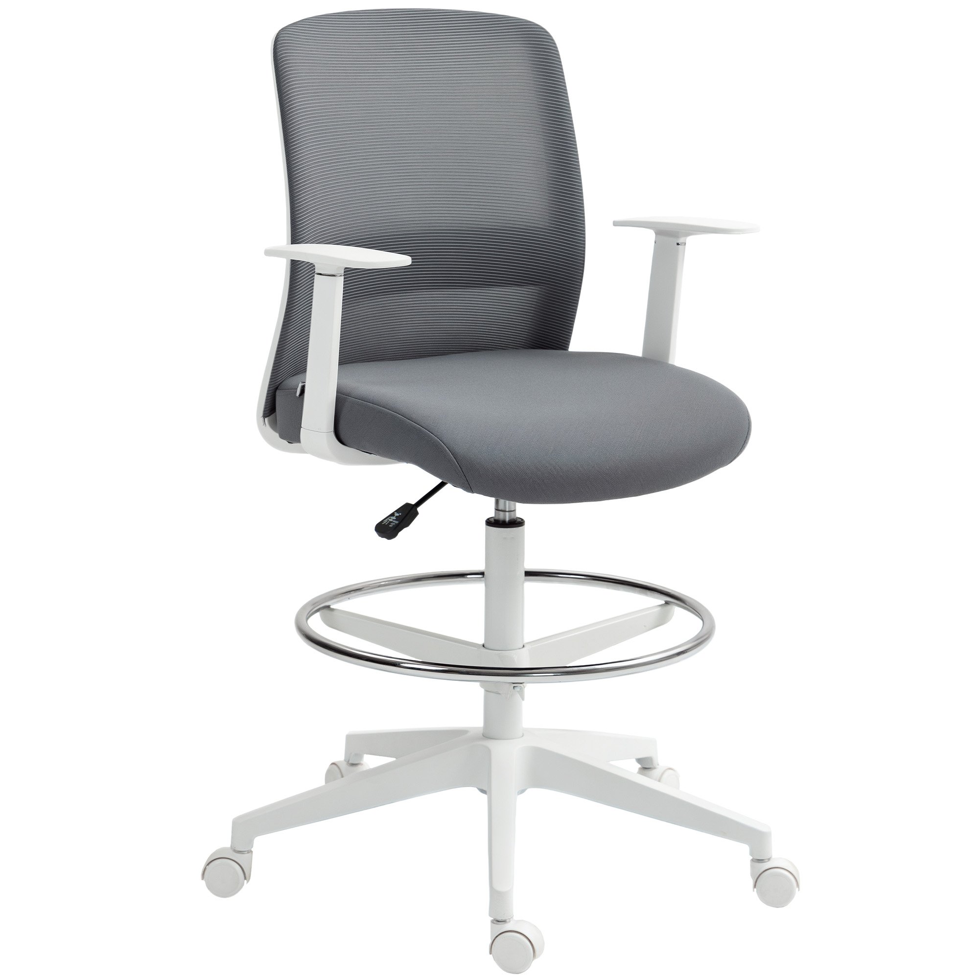 HOMCOM Chaise de Dessin Pivotante en Maille avec Repose-Pieds Support Lombaire Dossier et Hauteur Ajustable 61,5x57,5x107-121 cm Gris