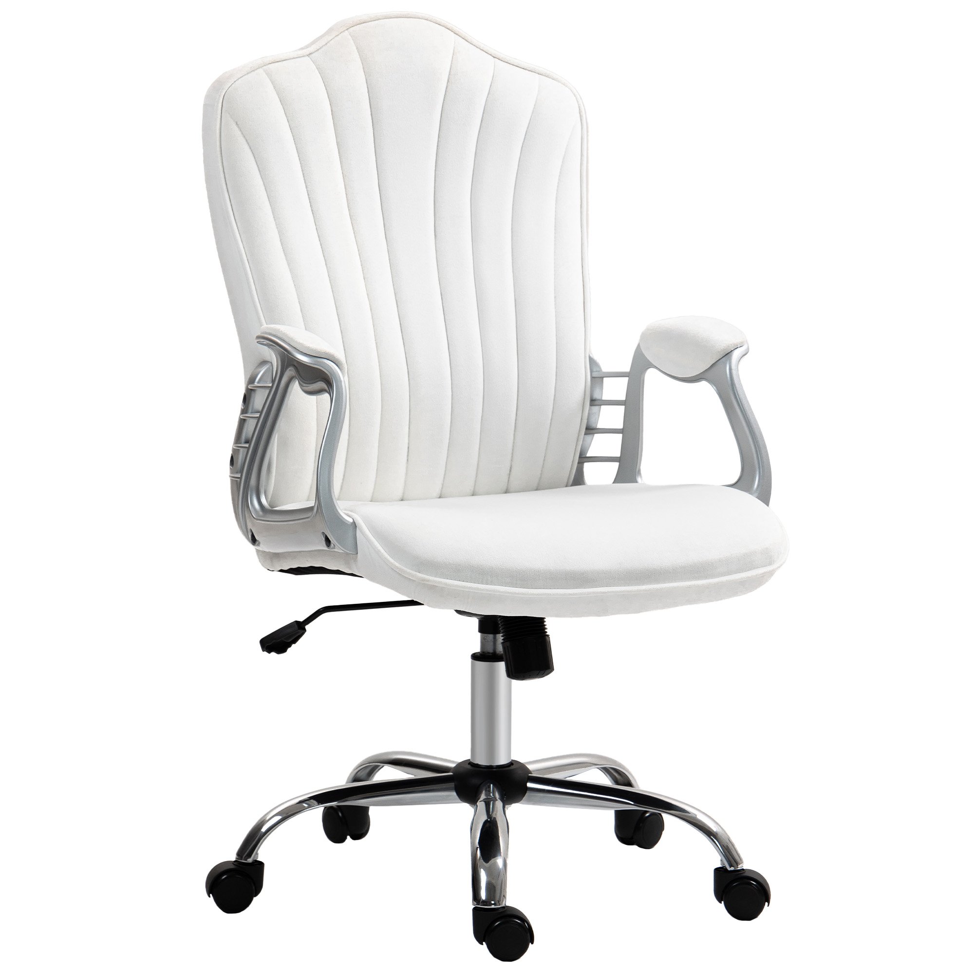 HOMCOM Chaise de bureau ergonomique siège pivotant hauteur réglable capacité 120 kg revêtement tissu bouclette blanc