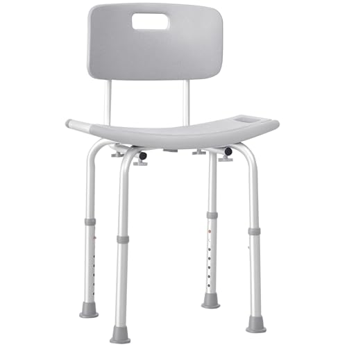 HOMCOM Chaise de Douche Siège de Douche Ergonomique Hauteur réglable Pieds antidérapants Charge Max. 136 Kg alu HDPE Gris