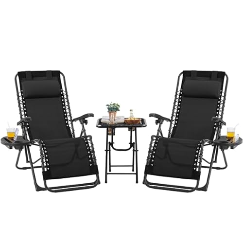 Yaheetech Lot de 2 Chaise Longue inclinable, avec Table Pliable Support de Gobelet, Chaise de Jardin Pliable en Textilène Chaise Longue, avec Rembourrage de Tête, Beige (Noir)