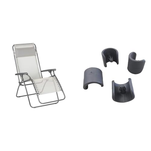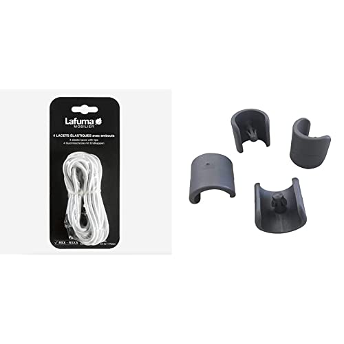 Lafuma Lacets élastiques avec Embouts pour RSX/RSXA,Kit de 4 Lacets, Couleur: Blanc, LFM2322-0020 & Kit de 4 Patins pour Fauteuil Relax et Chaise Longue, Diamètre: 20 mm, Couleur: Anthracite