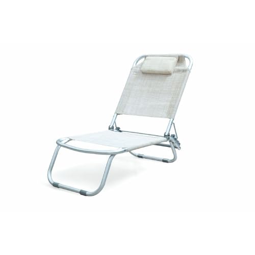 Galileo Casa Grecia Text Chaise Longue de Plage écru avec Coussin, Gris