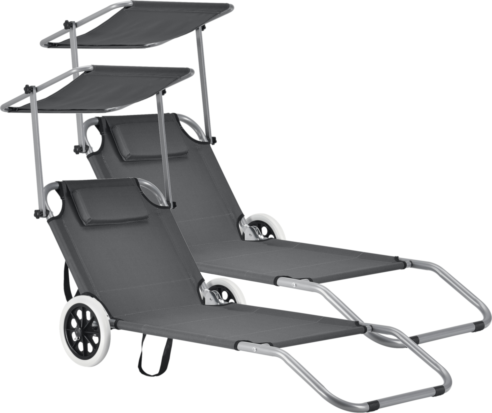 [casa.pro] Chaise longue [set de 2] pliable 190cm gris foncé avec toit Chaise longue en acier