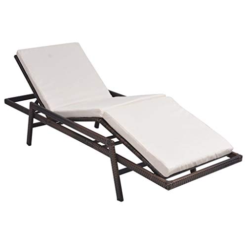 vidaXL Chaise Longue avec Coussin Transat de Patio Bain de Soleil de Jardin Chaise Longue d'Extérieur Terrasse Plage Résine Tressée Marron