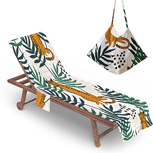 Morbuy Serviette de Plage avec Poche - Housse Chaise de Plage, Motif Animal Housse de Protection pour Chaise Longue/Housse de Transat Microfibre pour Été Vacances (Léopard de la Jungle)